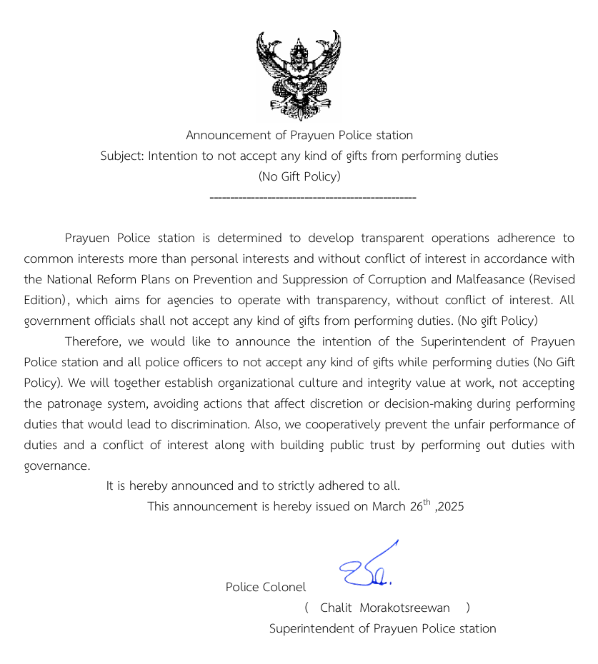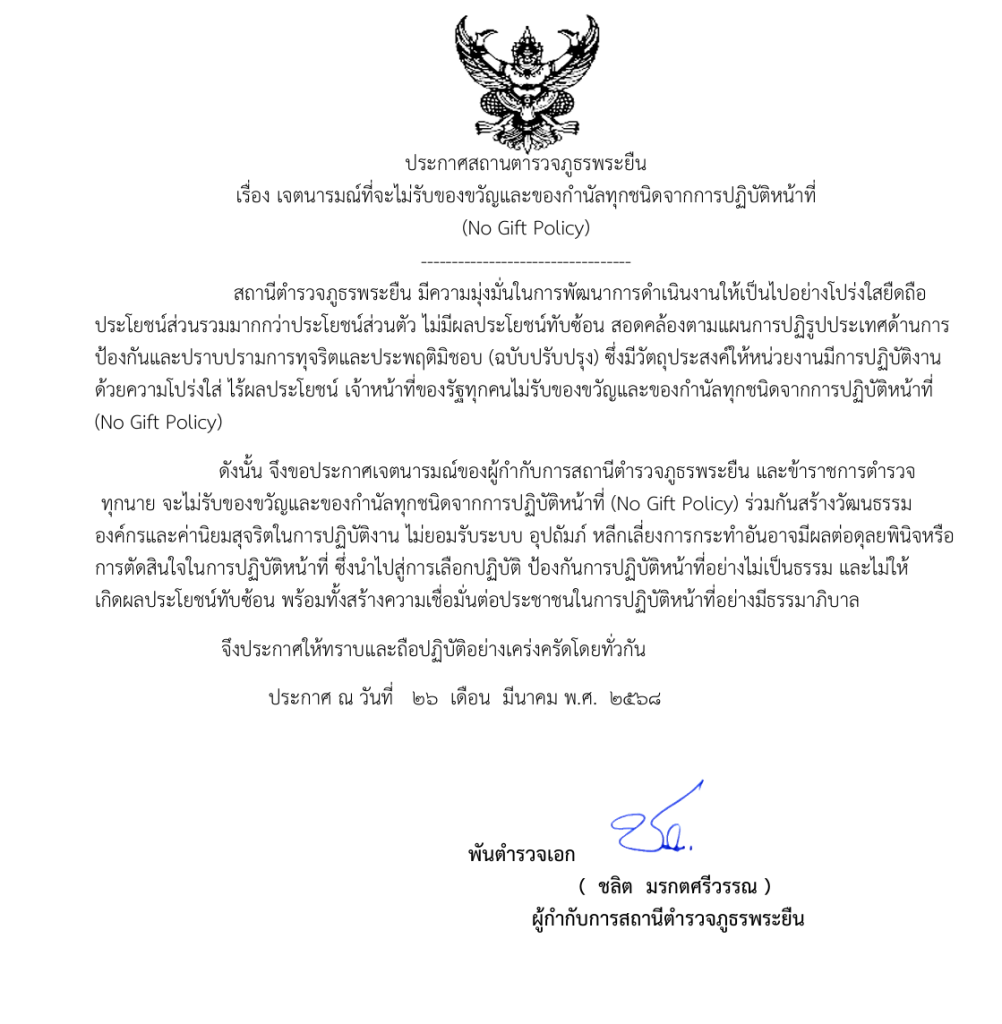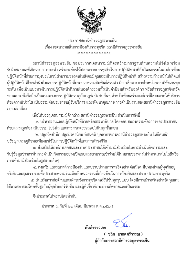 ประกาศสถานีตำรวจภูธรพระยืน