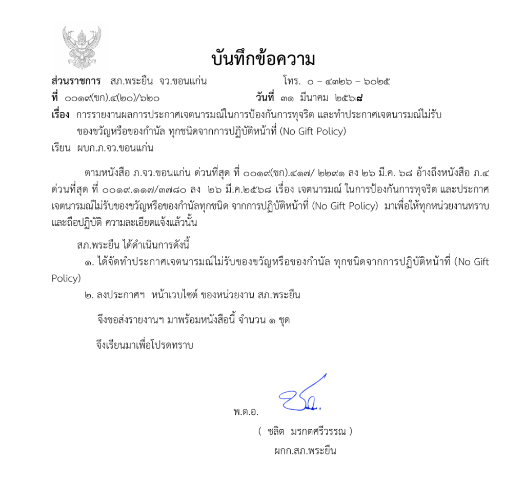 O18 ประกาศนโยบายต่อต้านการรับสินบน (Anti- Bribery Policy)